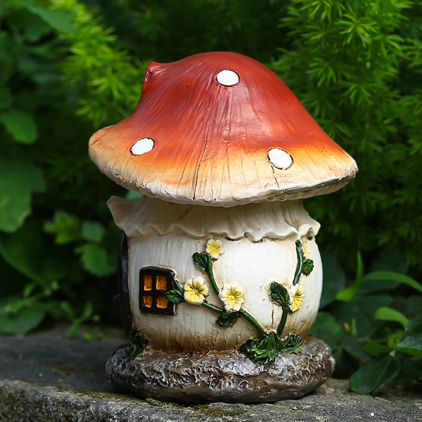 1 、 Svestrana i izdržljiva: Ova kuća od gljive od bajke izrađena je od izdržljive smole, a može se koristiti u zatvorenom prostoru i na otvorenom. Odličan dodatak vašim prozorima, loncima za cvijeće, biljkama u lončanima, minijaturnim vrtovima, stolovima itd. Odličan ukras za kućice za lutke, staklene posude, krajolik mahovine itd.