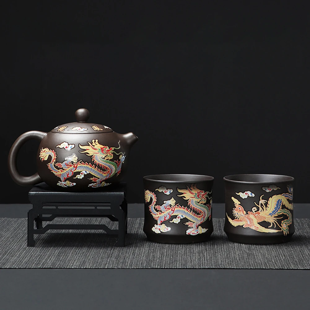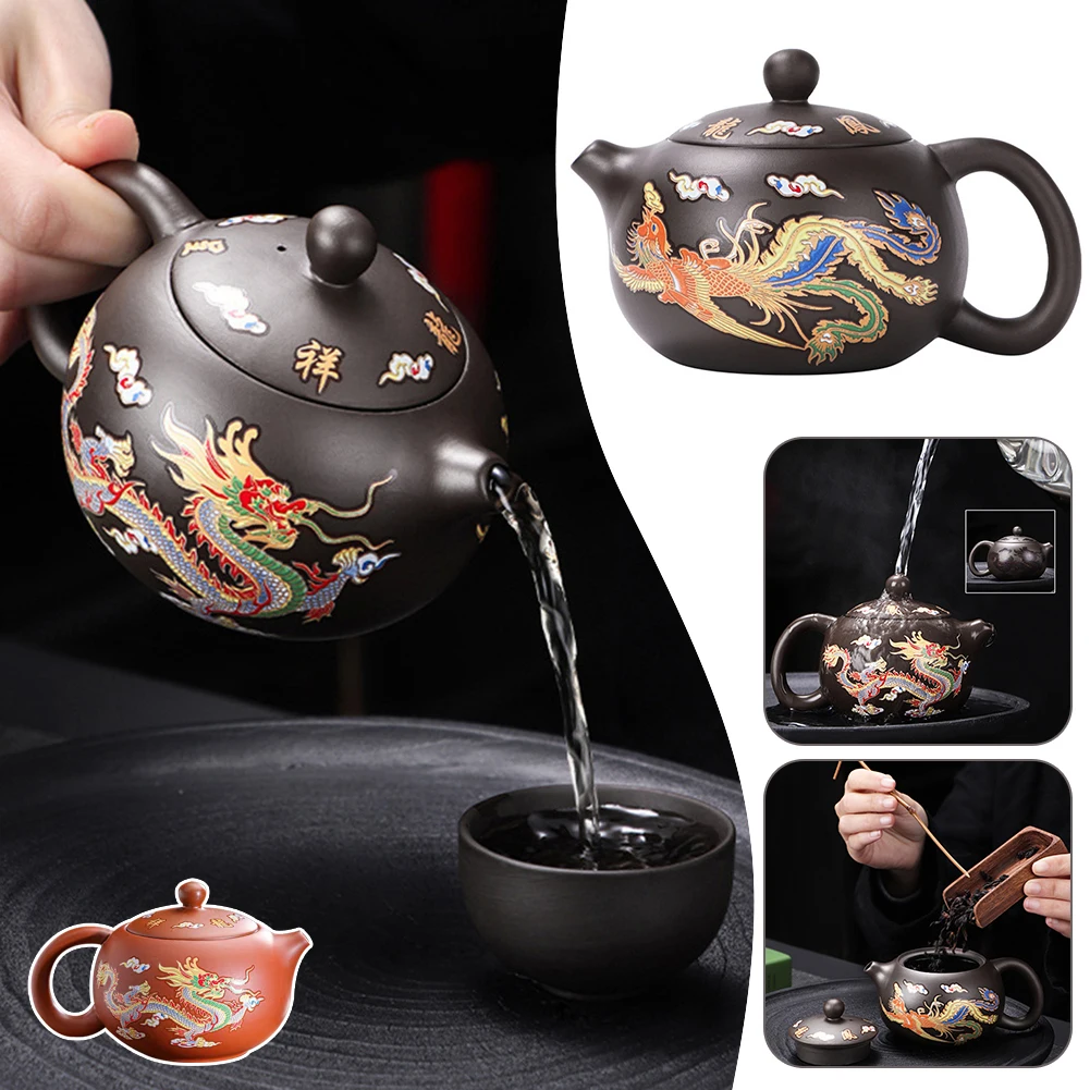 Color-changing glaze: The delicate dragons and phoenixs pattern on the teapot changes hue when exposed to hot water, adding a captivating visual elements.