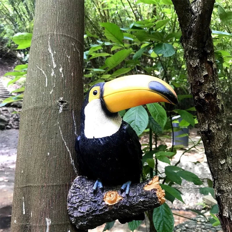 The lovely tree-hugging toucan art decoration design is vivid, powerful and domineering, full of vitality, creating a more intimate atmosphere to decorate the garden or backyard.