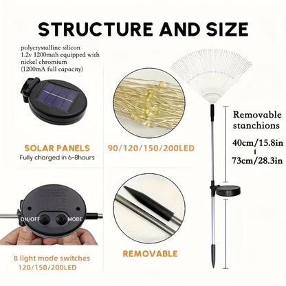200 LED Solar Garden Firework Lights Outdoor Waterproof 8modes Sparklers Solar Lamp For Outside Backyard Yard Pathway Decoration