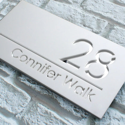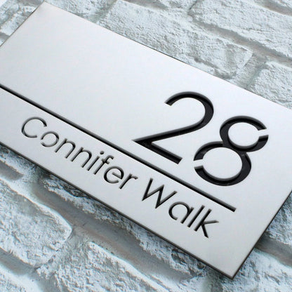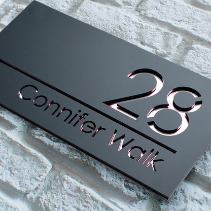 1. These awesome modern house signs are laser cut from Matt Black Acrylic with a stunning mirrored Acrylic backing.